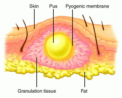 Abscess is a collection of pus, most often caused by a bacteria- Staphylococcus aureus. This could be secondary to an infected hair follicle, infected sebaceous cyst, and moor breaks and punctures of the skin which get infected. A fully develeloped abscess contains pus which needs surgical drainage to release the pus.